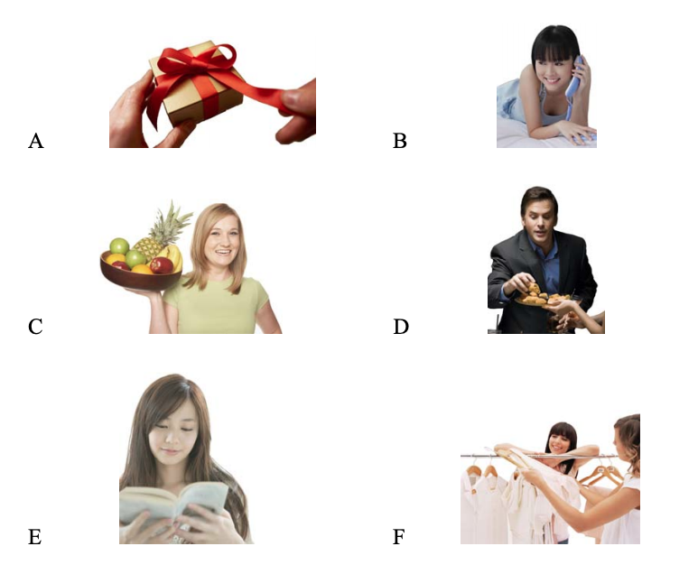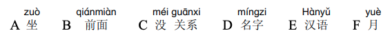 A. 医院 (yī yuàn)B. 下雨了 (Xià yǔ le) C. 我不认识她 (Wǒ bú rènshì tā) D. 7 岁 (7 suì) E. 下个月 (Xià ge yuè) F. 好的. 谢谢 (Hǎode. Xièxie)